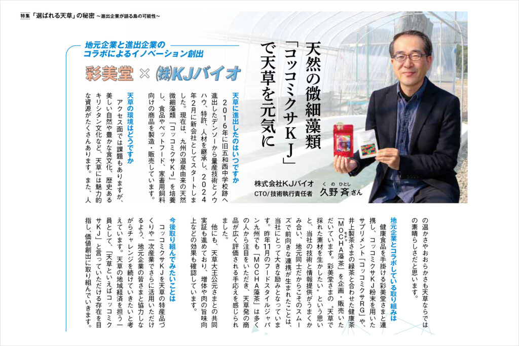 本誌では、天草市に進出した企業の視点から、天草での事業や地域に対する考えについてお話しさせていただきました。